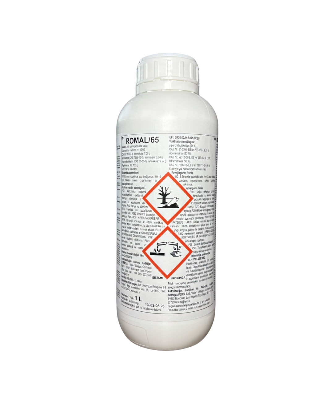 ROMAL/65 var izmantot, lai kontrolētu lidojošos kukaiņus, piemēram, mušas un odus. Atšķaidīšana: 1 — 2 litri produkta 98 — 99 litros ūdens. Lietošanas deva: 100 ml iegūtā, atšķaidītā šķīduma uzklāt uz 1 kvadrātmetru virsmas.